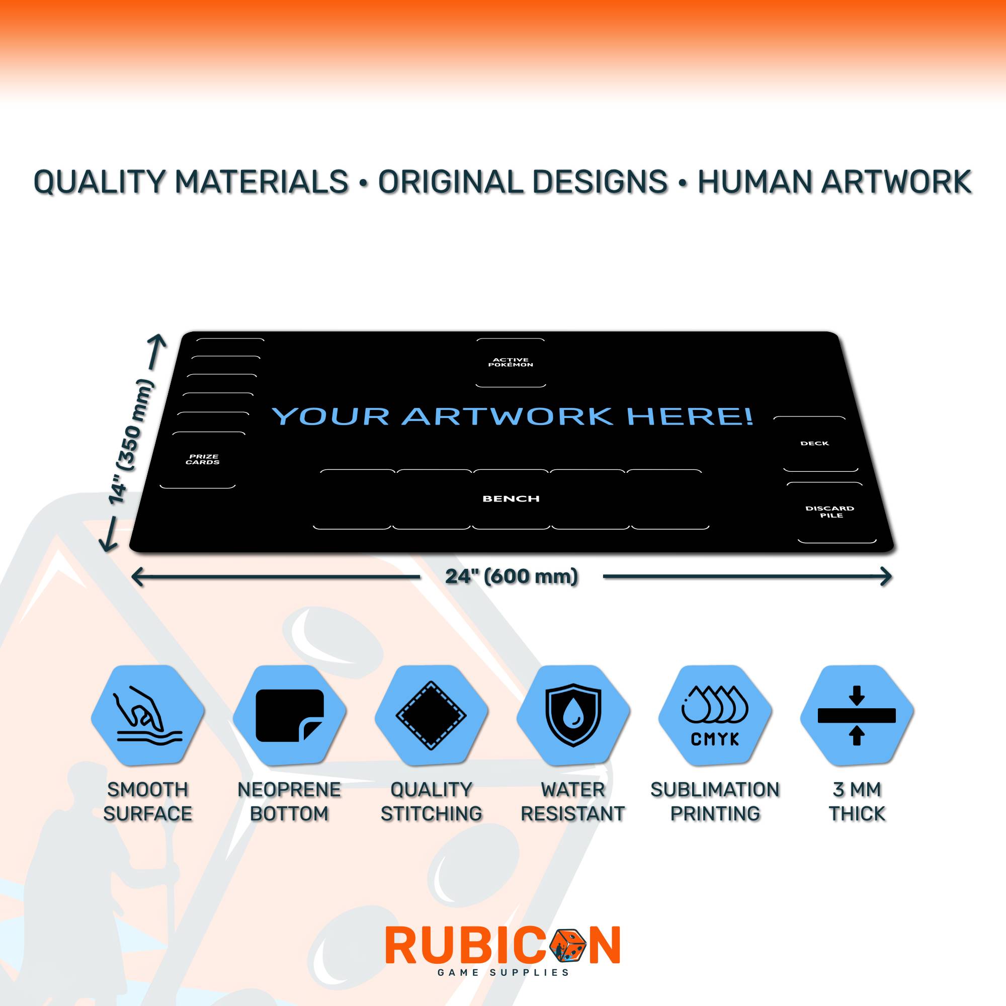 Turn your gaming table into a personalized battlefield or magical realm with our custom playmats. Whether you're dueling in your favorite card game or exploring fantasy worlds, our playmats offer an unbeatable blend of style and functionality. They're perfect for gamers, collectors, and as memorable gifts that will be treasured for years to come.
